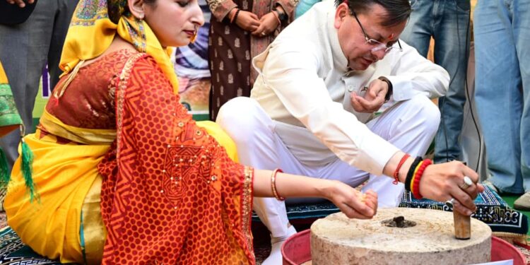 मुख्यमंत्री पुष्कर सिंह धामी ने राजधानी देहरादून स्थित परेड ग्राउंड में आयोजित “सरकार के 4 साल बेमिसाल” कार्यक्रम के अंतर्गत विभागों द्वारा लगाए गए स्टॉलों का निरीक्षण किया। कृषि विभाग द्वारा लगाए गए परंपरागत आर्थिक कृषि गतिविधि स्टॉल का निरीक्षण के दौरान मुख्यमंत्री ने ग्रामीण महिलाओं के साथ सहभागिता करते हुए पारंपरिक कृषि एवं घरेलू उपकरण ओखली, सिलबट्टा एवं जांदरा भी चलाया। उन्होंने महिलाओं के साथ संवाद स्थापित कर उनके कार्यों की सराहना की तथा उनके योगदान को प्रदेश की अर्थव्यवस्था के लिए महत्वपूर्ण बताया। मुख्यमंत्री की इस सहभागिता से उपस्थित महिलाओं में उत्साह एवं आत्मविश्वास की झलक देखने को मिली।