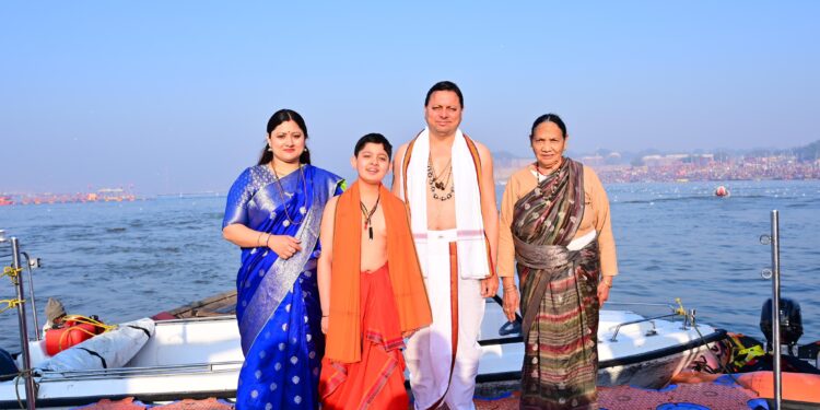 मुख्यमंत्री श्री पुष्कर सिंह धामी ने सोमवार को महाकुंभ 2025 के पुण्य अवसर पर पावन दिव्य त्रिवेणी संगम पर सपरिवार स्नान किया।