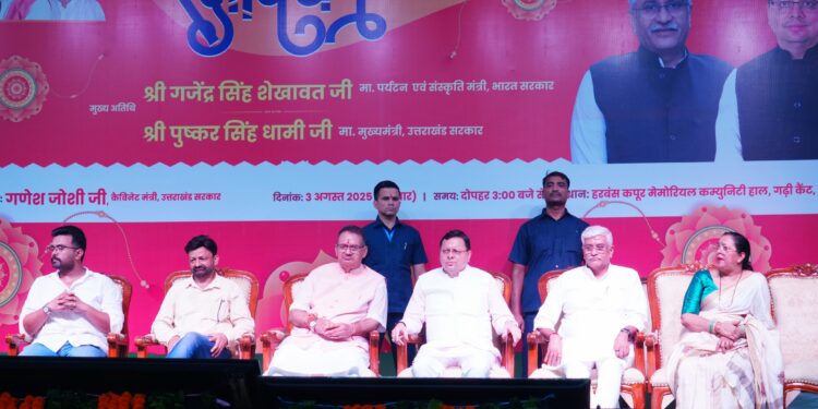 मुख्यमंत्री श्री पुष्कर सिंह धामी रविवार को केंद्रीय संस्कृति एवं पर्यटन मंत्री श्री गजेंद्र सिंह शेखावत की उपस्थिति में हरबंस कपूर मेमोरियल कम्युनिटी हॉल, गढ़ीकैंट,देहरादून में आयोजित रक्षाबंधन समारोह 2025 में सम्मिलित हुए |