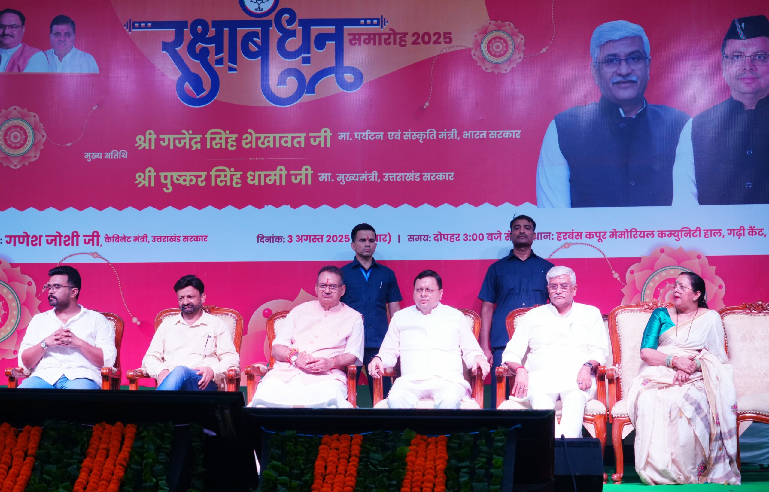 मुख्यमंत्री श्री पुष्कर सिंह धामी रविवार को केंद्रीय संस्कृति एवं पर्यटन मंत्री श्री गजेंद्र सिंह शेखावत की उपस्थिति में हरबंस कपूर मेमोरियल कम्युनिटी हॉल, गढ़ीकैंट,देहरादून में आयोजित रक्षाबंधन समारोह 2025 में सम्मिलित हुए |