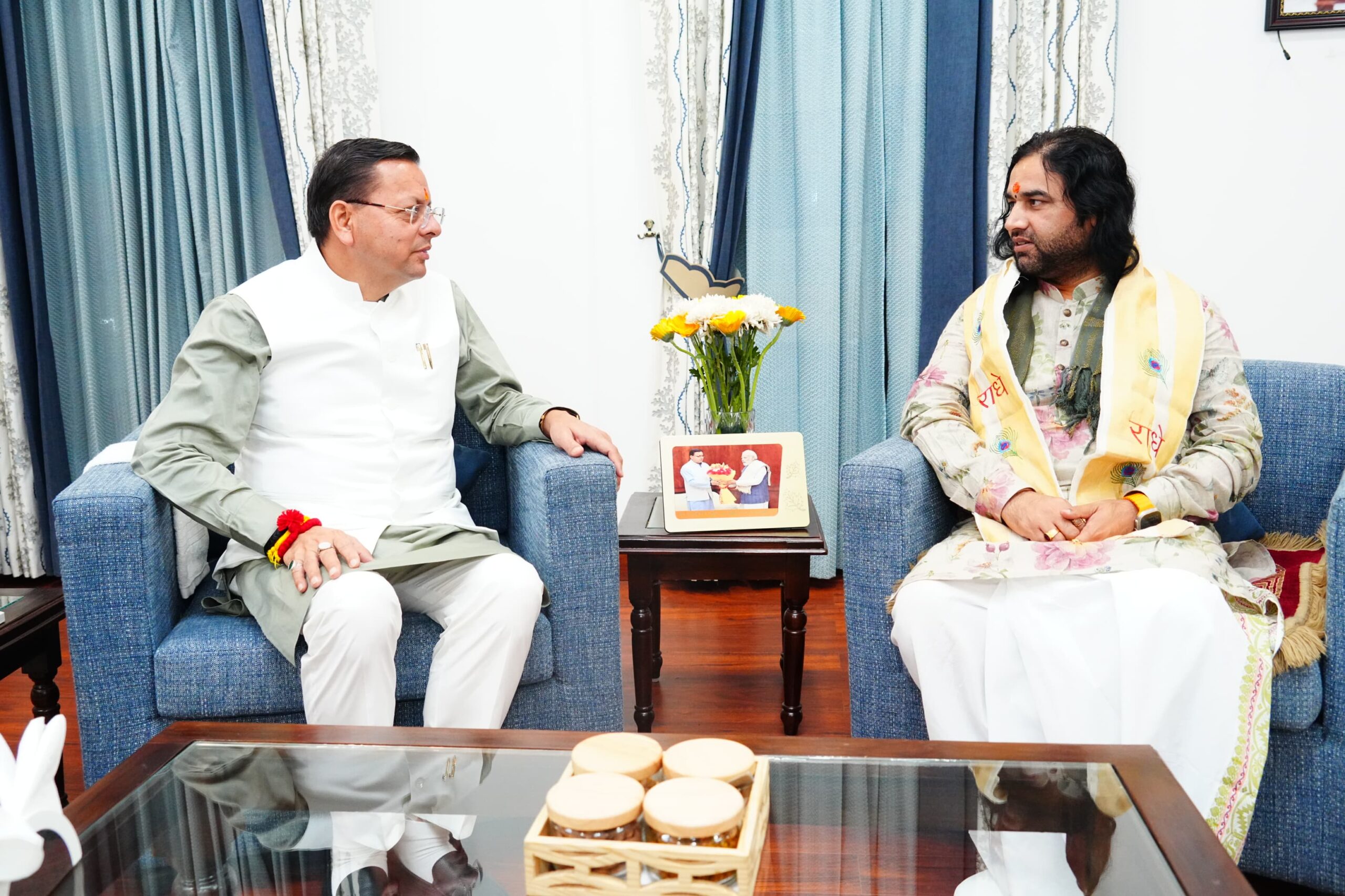 मुख्यमंत्री पुष्कर सिंह धामी से देवकी नंदन ठाकुर महाराज की शिष्टाचार भेंट