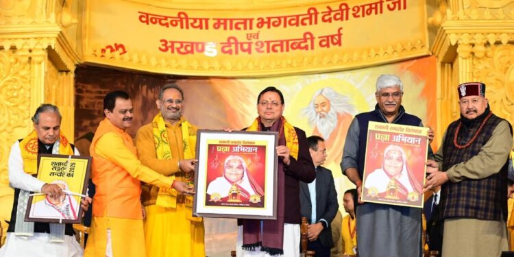 इस अवसर पर मुख्यमंत्री पुष्कर सिंह धामी ने कहा कि यह शताब्दी समारोह वंदनीया माता भगवती देवी शर्मा के तपस्वी जीवन, निःस्वार्थ सेवा और अखंड साधना के प्रति राष्ट्र की कृतज्ञता का साक्षात भावात्मक अभिव्यक्ति है। माताजी का संपूर्ण जीवन त्याग, बलिदान और साधना की वह ज्योति है, जिसने असंख्य जीवनों को सही दिशा और नई दृष्टि दी। उन्होंने कहा कि गायत्री परिवार को किसी एक संगठन की सीमाओं में नहीं बाँधा जा सकता, यह उस युग चेतना का वह प्रवाह है, जो व्यक्ति से समाज और समाज से राष्ट्र के उत्थान की ओर अग्रसर करता है।