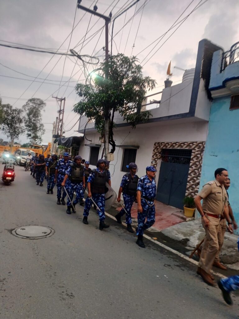 देहरादून : रैपिड एक्शन फोर्स और देहरादून पुलिस ने संयुक्त रूप से देहरादून के अलग अलग थाना क्षेत्रों में फ्लैग मार्च निकाला। पैदल मार्च कर जनसम्पर्क अभियान चलाया। आकस्मिक स्थिति में कम से कम समय में संवेदनशील स्थानों में पहुंच कर शांति व्यवस्था कायम करने के उद्देश्य से क्षेत्र की भौगोलिक स्थिति की जानकारी दी गई।