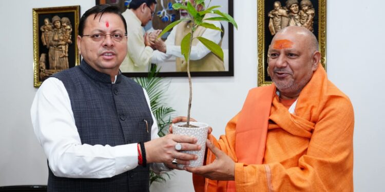 मुख्यमंत्री पुष्कर सिंह धामी से मुख्यमंत्री आवास में महामंडलेश्वर स्वामी श्री यतींद्रानंद गिरी जी महाराज ने शिष्टाचार भेंट की ।