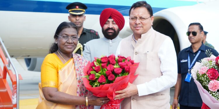 देहरादून, राष्ट्रपति द्रौपदी मुर्मु के उत्तराखण्ड आगमन पर गुरुवार को जौलीग्रांट एयरपोर्ट में राज्यपाल लेफ़्टिनेंट जनरल गुरमीत सिंह (से नि) तथा मुख्यमंत्री श्री पुष्कर सिंह धामी ने उनका स्वागत एवं अभिनंदन किया।