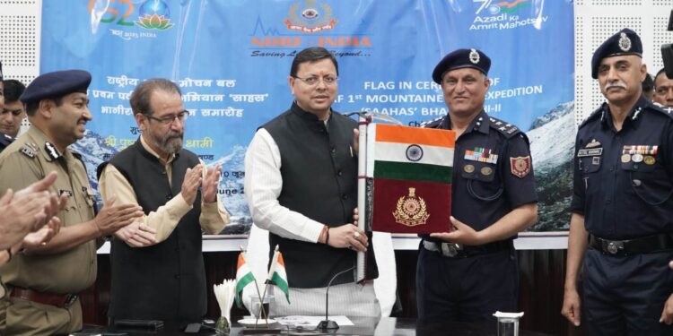 उत्तराखंड/देहरादून ,:मुख्यमंत्री पुष्कर सिंह धामी ने मुख्यमंत्री कैम्प कार्यालय में भागीरथी-2 चोटी का पर्वतारोहण कर लौटे एन.डी.आर.एफ के जवानों का स्वागत किया। मुख्यमंत्री ने पर्वतारोही दल का ध्वज ग्रहण कर इस अभियान का विधिवत समापन किया। मुख्यमंत्री ने एनडीआरएफ के सभी जवानों को इस कठिन अभियान को सफलतापूर्वक पूर्ण करने पर बधाई दी। उन्होंने कहा कि इस तरह के अभियान करने से आने वाली चुनौतियों का सामना करने में आसानी होती है।