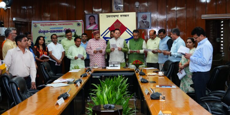 राज्य की द्वितीय राजभाषा संस्कृत के संरक्षण-संवर्धन एवं संस्कृत को जनभाषा बनाने के उद्देश्य से उत्तराखंड सचिवालय परिसर में ‘संस्कृत संभाषण शिविर’ का आयोजन किया जा रहा है। जिसका शुभारम्भ बुधवार को कैबिनेट के बाद मुख्यमंत्री श्री पुष्कर सिंह धामी के द्वारा सभी कैबिनेट मंत्रियों एवं मुख्य सचिव की उपस्थिति में किया गया।