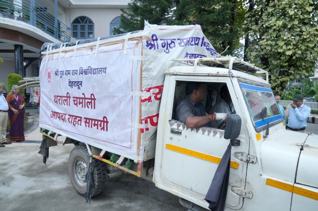 देहरादून। श्री गुरु राम राय विश्वविद्यालय ने थराली (चमोली) आपदा प्रभावितों के लिए राहत एवम् खा़द्य सामग्री भेजी। सोमवार को श्री गुरु राम राय विश्वविद्यालय की कुलपति प्रो. डॉ. कुमुद सकलानी और रजिस्ट्रार डॉ. लोकेश गंभीर ने राहत सामग्री से लदे वाहनों को हरी झंडी दिखाकर रवाना किया। श्री गुरु राम राय विश्वविद्यालय के माननीय प्रेसीडेंट श्रीमहंत देवेन्द्र दास जी महाराज ने कहा कि हम सभी प्रभु से प्रार्थना करते हैं कि प्रभावित परिवारों को शीघ्र ही इस कठिनाई से उबरने की शक्ति प्राप्त हो। उन्होंने चमोली जनपद के अन्तर्गत आने वाले एसजीआरआर ग्रुप के संस्थानों के कर्मचारियों का आह्वान किया कि आप सभी थराली आपदा पीड़ितों की हर सम्भव मदद में अपना योगदान दीजिए।