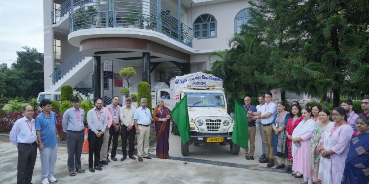 सोमवार को एसजीआरआर विश्वविद्यालय की कुलपति व कुलसचिव ने हरी झण्डी दिखाकर वाहनों को रवाना किया