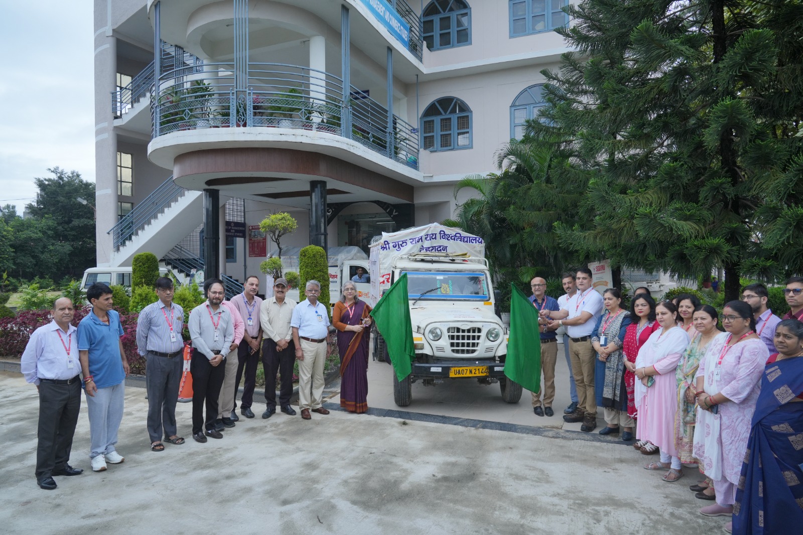 सोमवार को एसजीआरआर विश्वविद्यालय की कुलपति व कुलसचिव ने हरी झण्डी दिखाकर वाहनों को रवाना किया