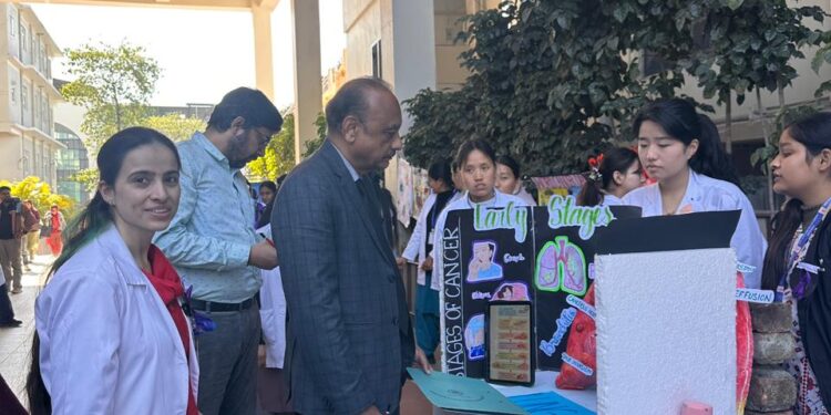 देहरादून। श्री गुरु राम राय विश्वविद्यालय, एसजीआरआर इंस्टीट्यूट ऑफ मेडिकल एंड हेल्थ साइंसेज तथा कॉलेज ऑफ नर्सिंग के संयुक्त तत्वावधान में 4 फरवरी 2026 को विश्व कैंसर दिवस के अवसर पर श्री महंत इन्दिरेश अस्पताल में एक जागरूकता कार्यक्रम का सफल आयोजन किया गया। ऑन्कोलॉजी विभाग के सहयोग से आयोजित इस कार्यक्रम का उद्देश्य कैंसर की रोकथाम, शीघ्र पहचान तथा स्वस्थ जीवनशैली के महत्व के प्रति जन-जागरूकता फैलाना था।