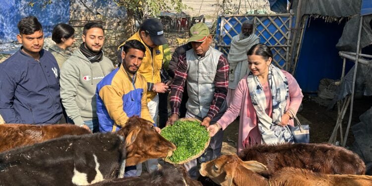 जिला हरिद्वार की बेटी बचाओ बेटी पढ़ाओं की ब्रांड एंबेसडर डॉ मनु शिवपुरी पूर्व से हरिद्वार मे अपने अच्छे कार्यों से अपनी छवि को मजबूत बना चुकी है। इस बार उन्होंने अपनी संस्था ‘मनु मन की आवाज’ फाउंडेशन के माध्यम से श्री कृष्ण कृपा कामधेनू गौशाला में घायल निराश्रित गौवंशों के लिए भूसे और हरा चारा और चोकर की व्यवस्था की गई। डॉ मनु शिवपुरी द्वारा अपनी टीम सदस्य मधुर मोहन शर्मा , संजीव बालियान, अनिल भारतीय , नीतिश रेहान , नमिता गोयल, अनिता गोयल , मनीषा शर्मा, नयनसी मल्होत्रा, अधिवक्ता अर्क शर्मा, सीए मृणाली शर्मा,आईटी इंजीनियर अर्थ शर्मा, का सदैव सहयोग देने हेतु आभार प्रकट किया। और संजीव बालियान ने अनिकेत गिरी द्वारा किए जा रहे घायल पशुओं और गौ वंशों की देखभाल और इलाज के लिए बहुत सराहना की। नीतिश रेहान भविष्य में भी सहयोग प्रदान करने की बात कही। अधिवक्ता अर्क शर्मा ने कहा कि हम ऐसे पुण्य कार्य एवम् सनातन जागृति हेतु सदैव आगे बढ़ कर कार्य करेंगे। आईटी इंजि अर्थ शर्मा ने कहा की मैं ऑस्ट्रेलिया से जब जब आऊंगा तो इस गौ वंशों की शाला में सहयोग प्रदान करने का प्रयास करूंगा।