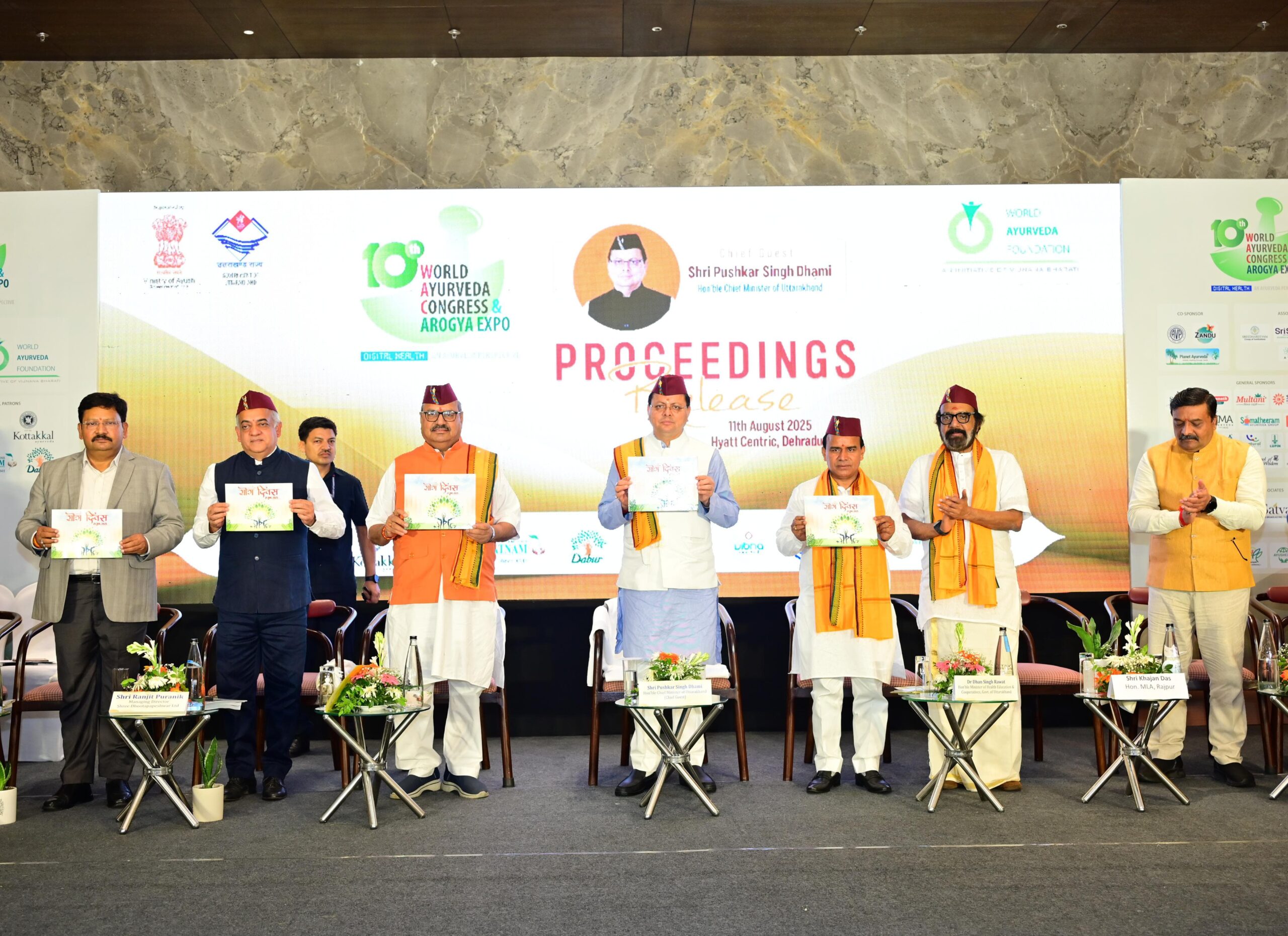 सोमवार को ओल्ड राजपुर स्थित एक होटल में 10वीं विश्व आयुर्वेद कांग्रेस एवं आरोग्य एक्सपो के प्रोसेडिंग विमोचन समारोह को संबोधित करते हुए, मुख्यमंत्री श्री पुष्कर सिंह धामी ने कहा कि ये हमारे लिए अत्यंत गर्व का विषय है कि देवभूमि उत्तराखंड 10वीं विश्व आयुर्वेद कांग्रेस और आरोग्य एक्सपो का आयोजन करने में सफल रहा, साथ ही अब हम उस ऐतिहासिक आयोजन की स्मृतियों और उपलब्धियों को संजोने के लिए प्रोसिडिंग का विमोचन कर रहे हैं। उन्होंने कहा कि ये मात्र एक दस्तावेज नहीं बल्कि ज्ञान, अनुभव और गहन विचार-विमर्श का सार तत्व है, जो आने वाले वर्षों में आयुर्वेद के क्षेत्र में अनुसंधान, नीति-निर्माण और जन स्वास्थ्य की दिशा तय करने में अपनी महत्वपूर्ण भूमिका निभाएगा।