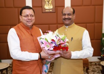 मुख्यमंत्री पुष्कर सिंह धामी ने लोकसभा अध्यक्ष ओम बिड़ला से की शिष्टाचार भेंट