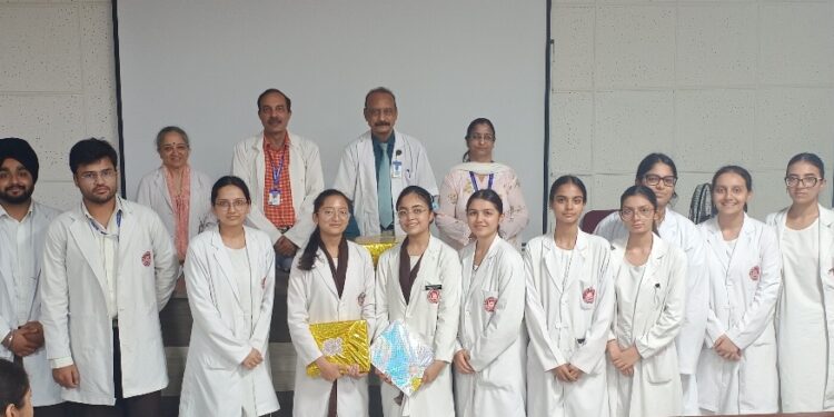 देहरादून। श्री गुरु राम राय इंस्टीट्यूट ऑफ मेडिकल एंड हेल्थ साइंसेज के माइक्रोबाॅयलाॅजी विभाग द्वारा राष्ट्रीय चिकित्सक दिवस के अवसर पर कार्यक्रम आयोजित किया गया। इस कार्यक्रम का उद्देश्य डॉक्टरों के अमूल्य योगदान को सम्मान देना और भावी चिकित्सकों में शैक्षणिक रचनात्मकता को प्रोत्साहित करना रहा। मेडिकल छात्र-छात्राओं ने माॅडल प्रस्तुतिकरण के द्वारा विभिन्न मेडिकल विषयों पर महत्वपूर्णं जानकारियां सांझा की। प्रथम पुरस्कार तितिक्षा रावत, विभूति सादवार्ती और उनके समूह को कोरोना वायरस पर आधारित उनके सूक्ष्म एवं आकर्षक मॉडल के लिए प्रदान किया गया। द्वितीय पुरस्कार सुहानी धवन, संजीवनी रांगड़ एवं उनकी टीम को “पैरा साइटिक एग्स इन स्टूल-रूटीन एंड माइक्रोस्कोपी” विषय पर उनके ज्ञानवर्धक मॉडल के लिए मिला। तृतीय पुरस्कार अनुष्का सालर, अंशुल गर्ग एवं उनके समूह को “हाइपरसेंसिटिविटी रिएक्शन्स” को रचनात्मक रूप से प्रस्तुत करने के लिए प्रदान किया गया।