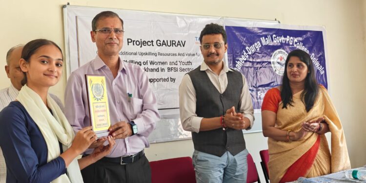 देहरादून, शहीद दुर्गा मल्ल राजकीय स्नातकोत्तर महाविद्यालय डोईवाला, के वाणिज्य संकाय के तत्वाधान में पांच दिवसीय कौशल विकास कार्यक्रम के अंतर्गत “प्रोजेक्ट गौरव” के द्वित्य चरण का प्रशिक्षण दिनांक १६ अक्टूबर २०२५ को सफलतापूर्वक संपन्न किया गया । “प्रोजेक्ट गौरव” के अंतर्गत इस प्रशिक्षण का मुख्य उद्देश्य युवाओं को स्टॉक एक्सचेंज, म्युचुअल फंड आदि में निवेश करने की प्रक्रिया तथा जोखिम के बारे में पूर्ण जानकारी प्रदान करना एवं छात्रों के कौशल को बढ़ाना है l
