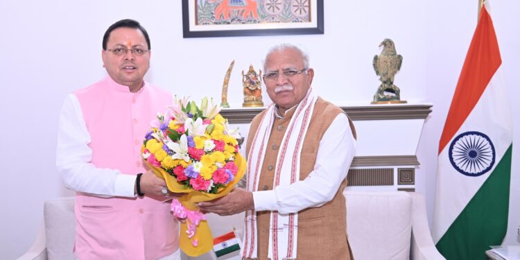 दिल्ली, उत्तराखण्ड के मुख्यमंत्री पुष्कर सिंह धामी ने आज नई दिल्ली में केंद्रीय विद्युत मंत्री श्री मनोहर लाल खट्टर से भेंट की और राज्य के लिए कई महत्वपूर्ण विषयों पर चर्चा की। मुख्यमंत्री ने ऋषिकेश, हरिद्वार और अन्य तीर्थ क्षेत्रों में आगामी कुंभ 2027 को ध्यान में रखते हुए बुनियादी ढांचे के विकास तथा आवास योजनाओं से जुड़े विषयों पर केंद्र सरकार से सहयोग का अनुरोध किया।